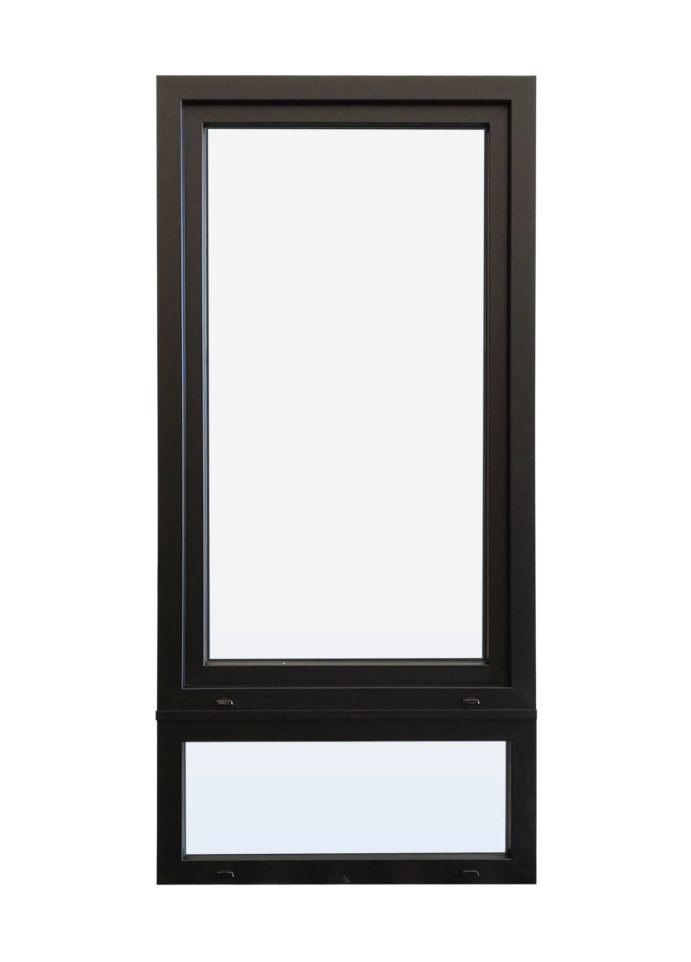 A single sash window with transom combines one operable tilt-and-turn sash with one fixed window. Tilt-and-turn windows function similarly to casement windows but open inward, allowing for controlled ventilation or full opening. Unlike traditional casement windows, which typically open outward in a single mode, tilt-and-turn windows use a dual-function hardware system that offers two operating positions. In the tilt position, the top of the sash pivots inward to provide controlled airflow while remaining securely supported. In the turn position, the sash opens inward on side hinges, allowing full access. The fixed unit may be positioned above, below, or within the overall configuration, providing flexible layout options that increase daylight and enhance the architectural proportion of the opening. All units share consistent profiles and performance characteristics for a cohesive appearance across the assembly.